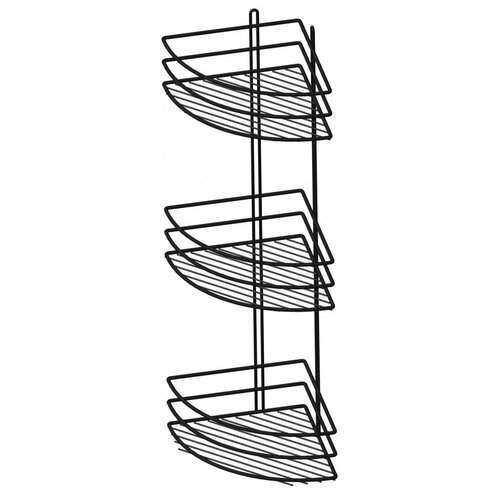 Полка для ванной PROFFERO угловая 3-ярусная овальная с высоким бортом /сталь цв. черный/