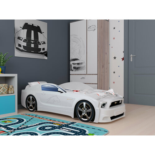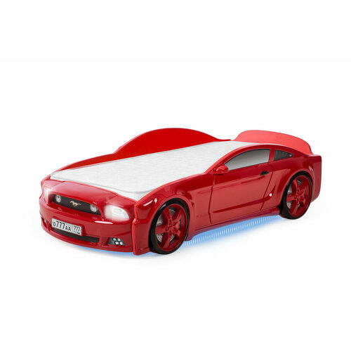 Кровать-машина детская Мустанг 3D, с подсветкой дна с подсветкой фар