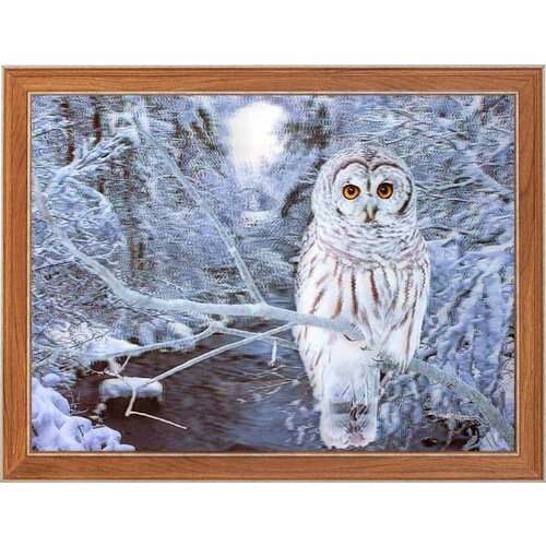Линзовидная декоративная картина с эффектом 3D и 5D в коричневой раме 30х40 см, "Сова".