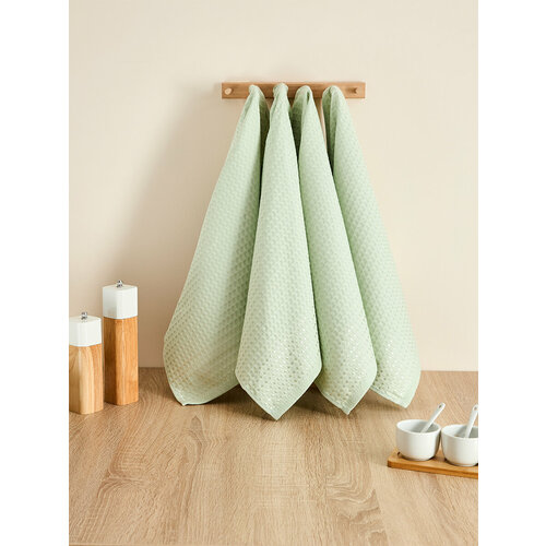 Набор вафельных полотенец Cozy Home "Nativo" 4 шт, 50х70 см, хлопок, светло-зеленый