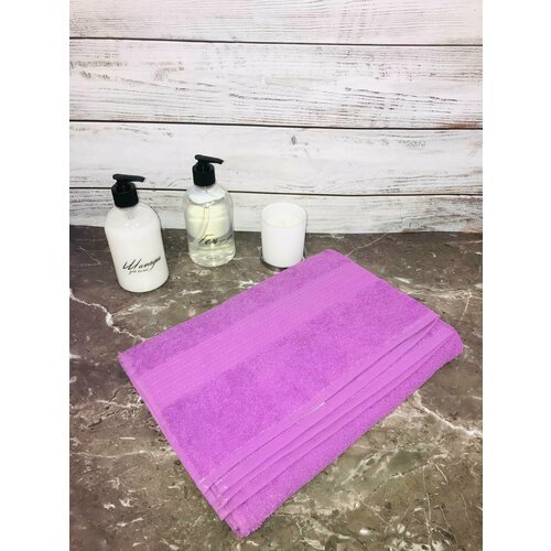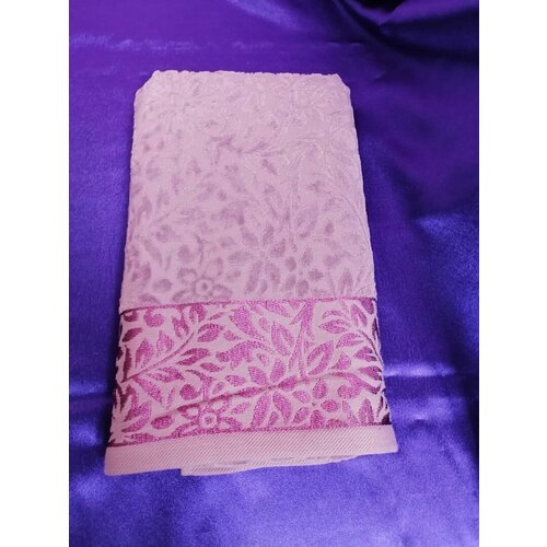 Полотенце махровое артикул 1568 сиреневого цвета с рисунком цветы размер: 50*90