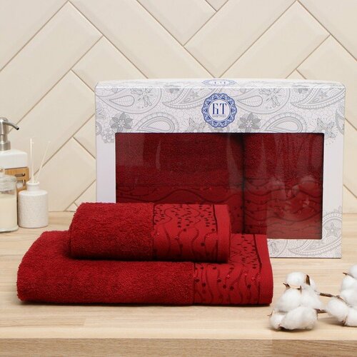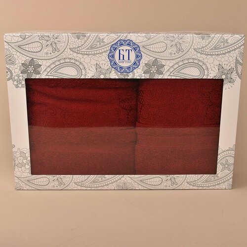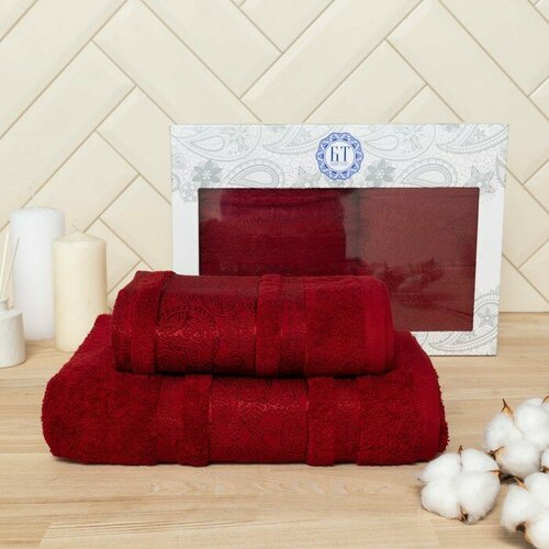 Набор полотенец в коробке Пейсли, размер 50х90+70х130 см, цвет божоле, махра, 450 г/м, 100% хлопок