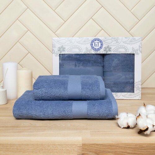 Набор полотенец в коробке Найс, размер 50х90+70х130 см, цвет барвинок, махра, 450 г/м, хлопок 100%