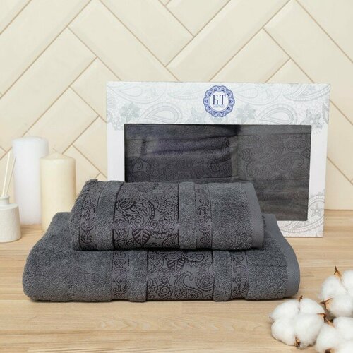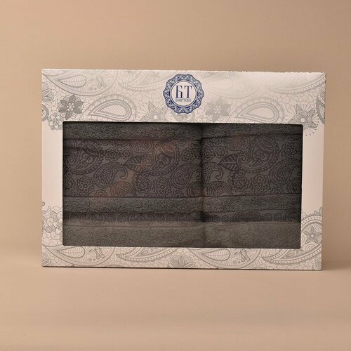 Набор полотенец в коробке Пейсли, размер 50х90+70х130 см, цвет графит, махра, 450 г/м, 100% хлопок