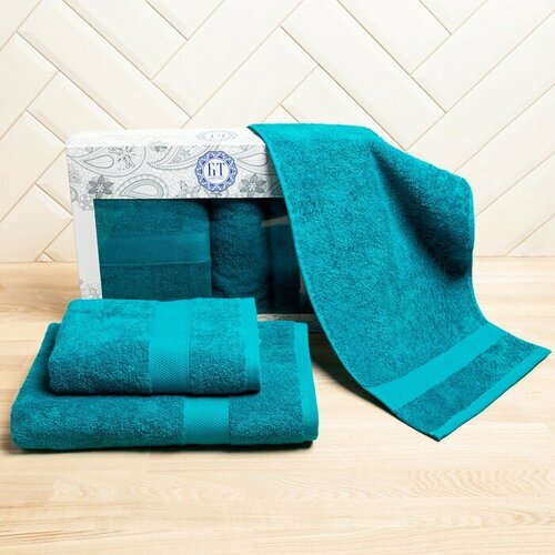 Набор полотенец в коробке Найс, размер 30х60см + 50х90см + 70х130см, изумруд, 450г/м, 100% хлопок