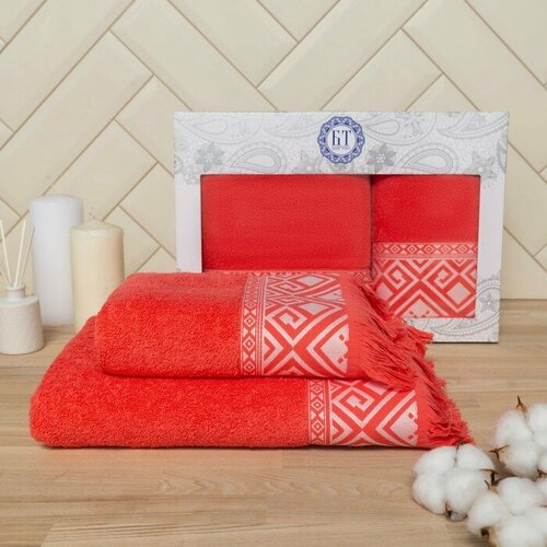 Набор полотенец в коробке Сахара, размер 50х90+70х140 см, цвет коралловый, махра, 450 г/м, 100% хлопок
