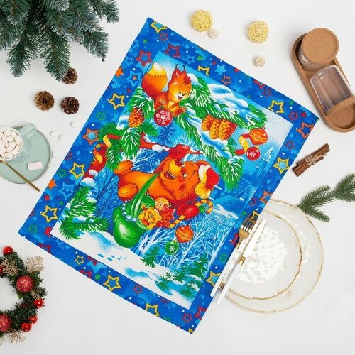Домашний уют Полотенце новогоднее, размер вафельное Мишка 45х60см, 150г/м, 100% хлопок