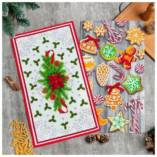 Набор кухонных полотенец Доляна «Новогоднее печенье » 35х60см-2шт, 100% хлопок