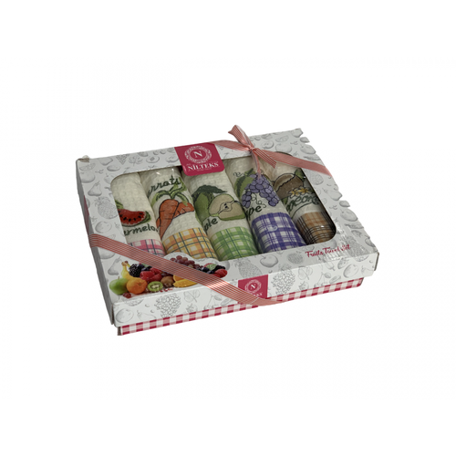Комплект вафельных полотенец 40x60 (5 шт) 757 Фрукты V5 Nilteks (разноцветный), Комплект полотенец