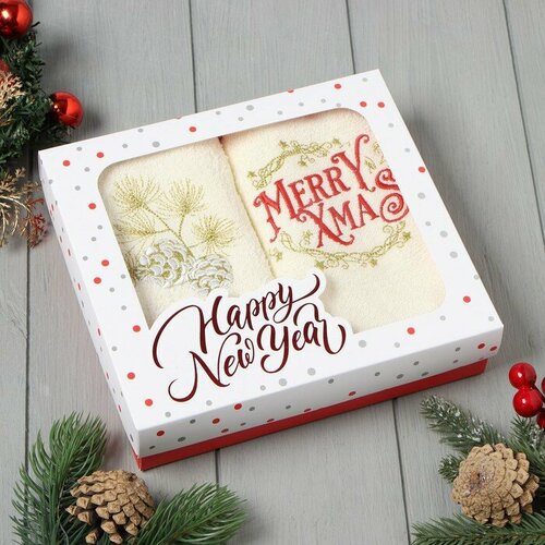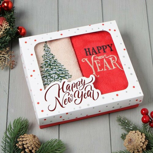 Набор полотенец Этель "Снежная ель" 30х60 см - 2 шт, 100% хлопок, 340 г/м2