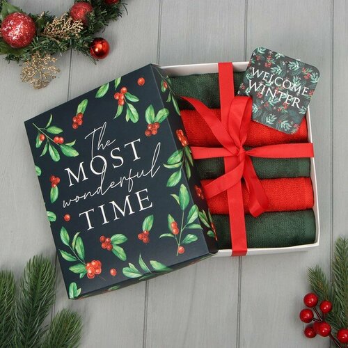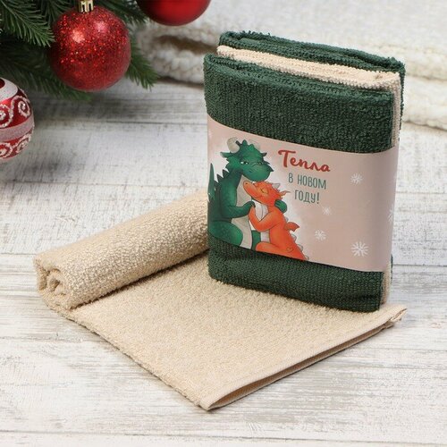 Набор махровых полотенец Этель "Тепла в Новом году" 30х30 см - 3 шт, 340 г/м2, 100% хлопок