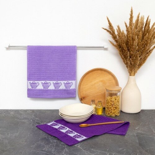 Комплект полотенец махровых лаванда/ежевика, размер 30х50, 400г/м, хлопок 100%
