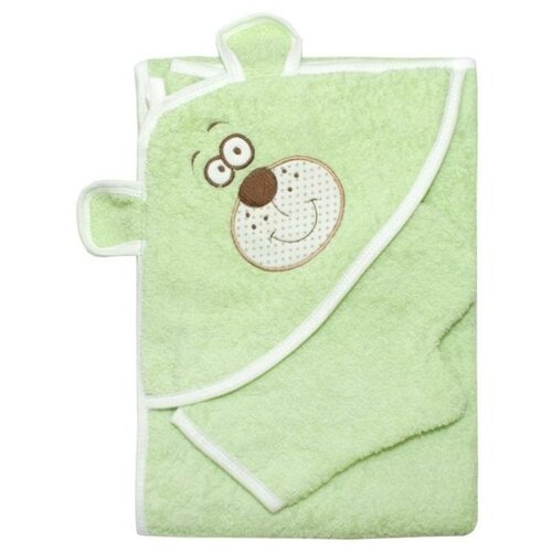 Осьминожка Набор для купания (полотенце-уголок, рукавица) с вышивкой «Мишка», размер 100х110 см, цвет зелёный