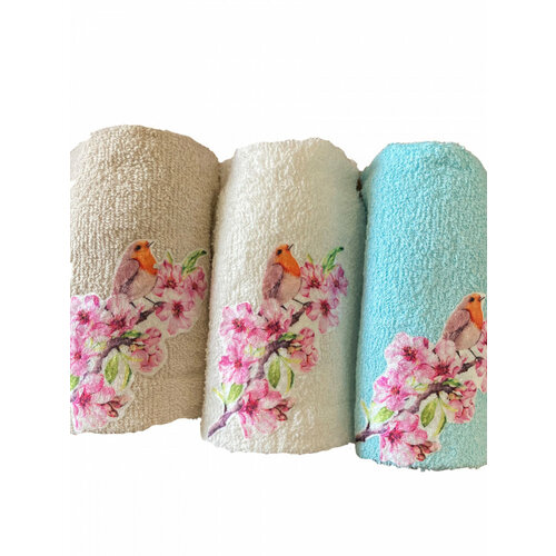 Набор полотенец хлопок 100% Весна-Птицы 523-5 30х50 3 шт Сонька-Дремка