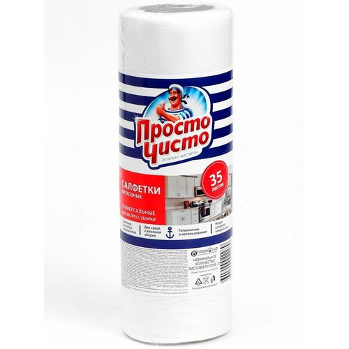 Салфетки для уборки в рулоне универсальные, вискоза, 35 шт