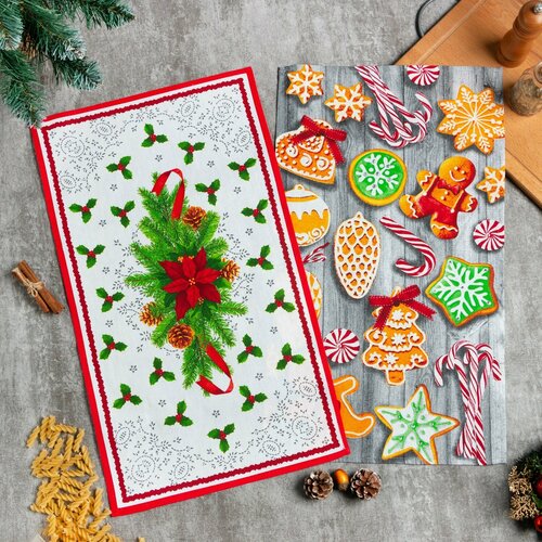 Набор кухонных полотенец «Новогоднее печенье » 35х60см-2шт, 100% хлопок