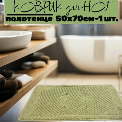 Полотенце-коврик махровое для ног TM TEXTILE 50x70 пыльно-оливковый 118, 1шт, плотность 700