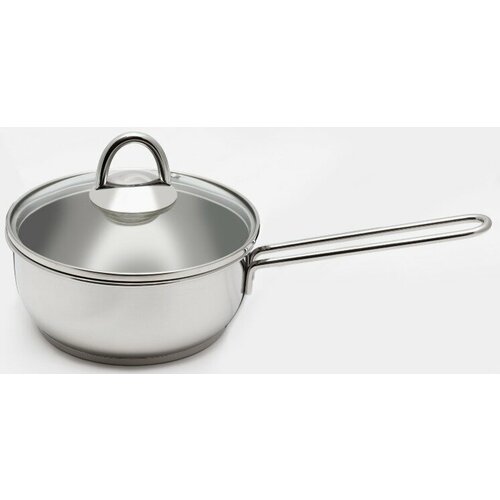 Кастрюля из нержавеющей стали Амет Классика-Прима с крышкой и длинной ручкой 1л / посуда для газовых и электрических плит