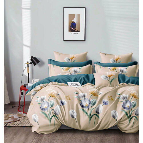 Постельное белье из тенселя люкс TSL-001 Elin (кремовый-бежевый), 1,5 спальный (наволочки 70x70)