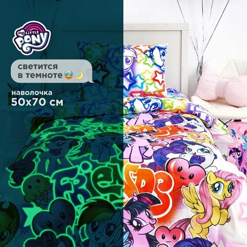 Детское постельное белье 1,5 спальное Непоседа, поплин хлопок, 1 наволочка 50х70, постельное белье 1 5 спальное My little Pony" / Май литл пони / Neon Граффити 16027-1/16028-1, комплект для девочки
