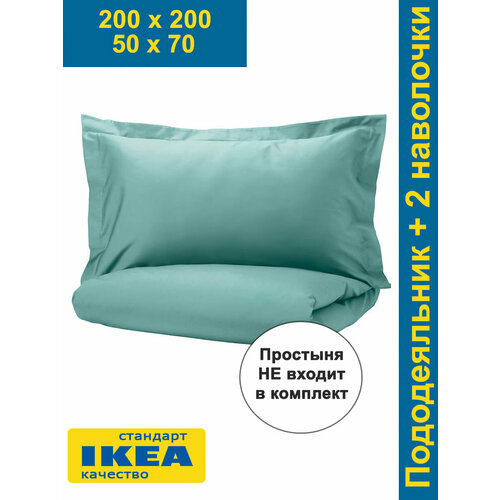 Пододеяльник 1,5 спальный, наволочка лютесмио (икеа люктэсмин) 150x200/50x70, серо-бирюзовый, сатин KL-10484436
