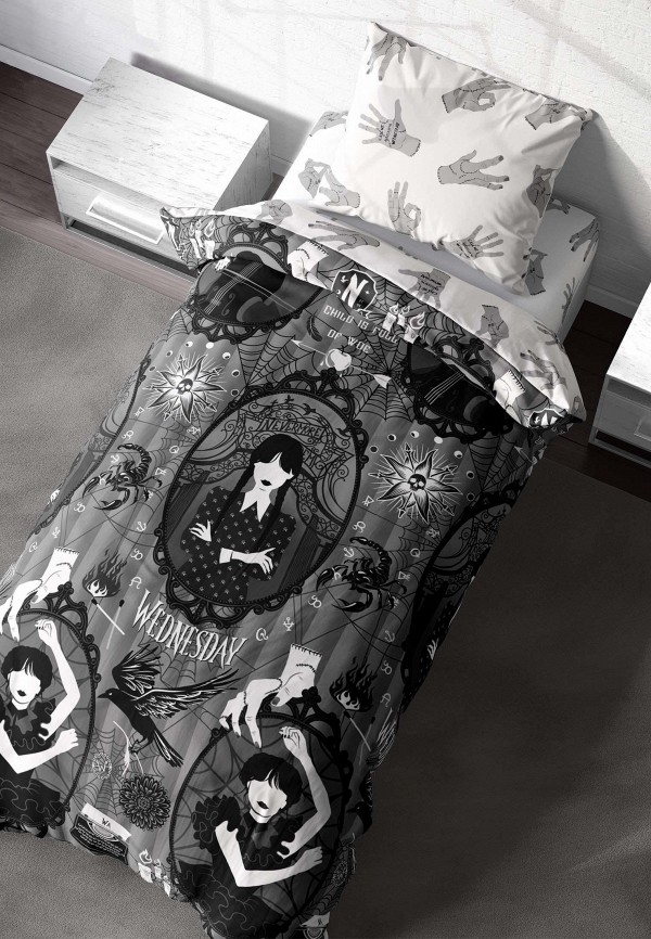 Постельное белье 1.5 спальное Crazy Getup, Поплин, нав. 70х70, Gothic Kuromi (Куроми Готика) белый, черный, серый, размер 1.5, спальный