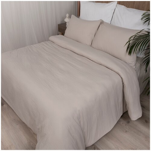 Комплект постельного белья La Notta двуспальный с евро простыней, полисатин, жатка, песочный
