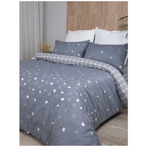 Постельное белье семейный дуэт La Notta " Loving" сатин, цвет серые сердечки