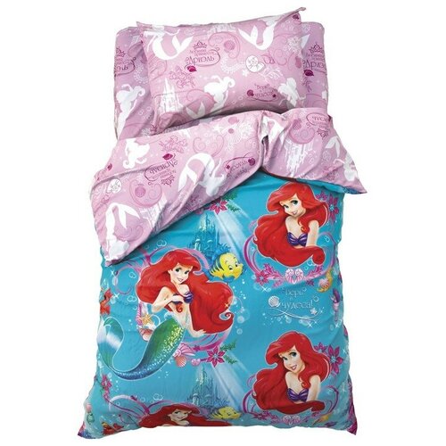 Disney Постельное бельё 1,5 сп "Принцессы: Русалочка Ариэль", размер 143х215 см, 150х214 см, 50х70 см-1 шт, 100% хлопок, бязь