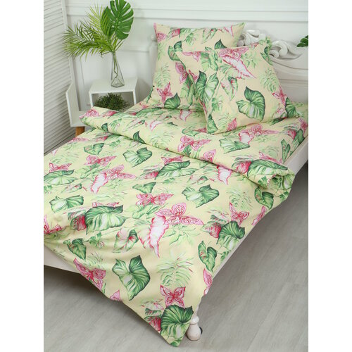 Постельное белье 1.5 спальное 160х220 Simple Living Hawaii сатин, наволочка 50х70, Зеленый