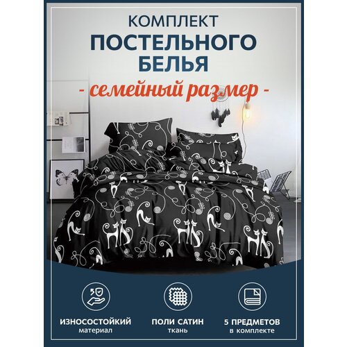 Постель детская семейный комплект багира поли сатин постелька 37 ивановский текстиль для дома Бояртекс котики черно белое