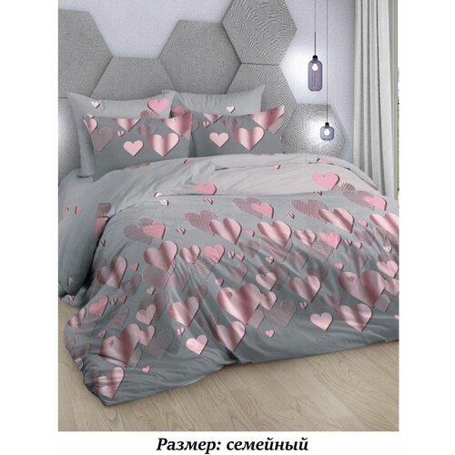 Постельное белье семейное с 2 пододеяльниками 160x220 Simple Living Heather комплект сатин, 2 наволочки 50х70, Cиреневый