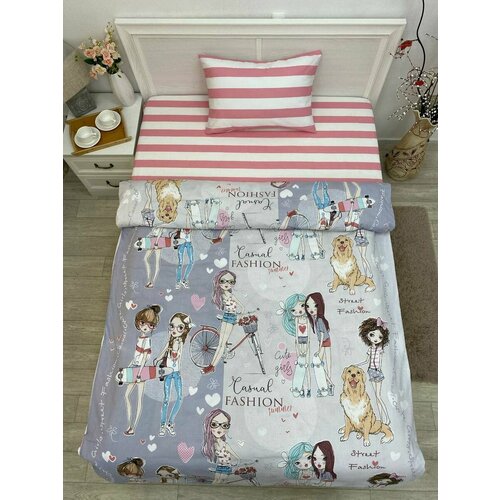 В комплект входят пододеяльник размером 175 х 215, две наволочки размером 70 х 70 и простыня размером 220 х 240.