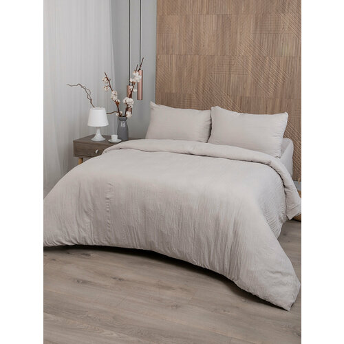 Постельное белье 2 х спальный комплект с евро простыней 220Х240см, жатка, полисатин, песочный