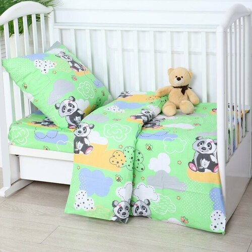 Постельное бельё BABY Панда, цвет зелёный, 112х147см,110х150см, 60х60см, бязь 142гр/м, 100% хлопок