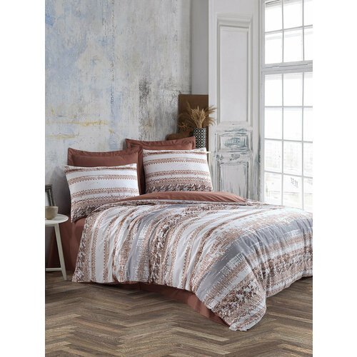 Турецкое постельное белье ALTINBASAK ранфорс WATER GADN коричневое евро