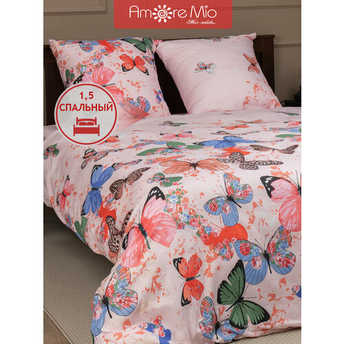 Постельное бельё Amore Mio серии Макосатин 1,5 спальное, комплект с рисунком бабочки, полисатин