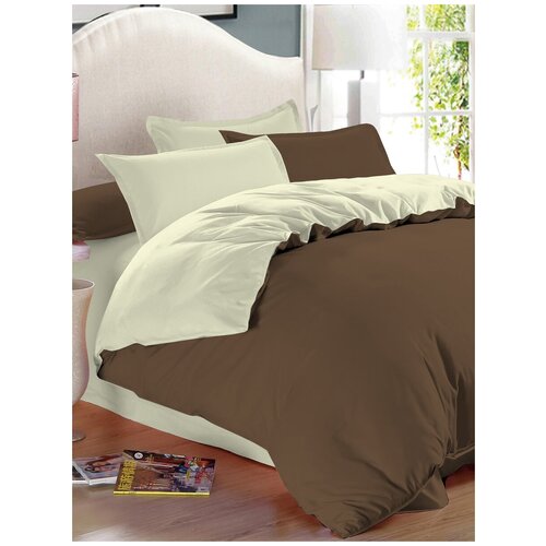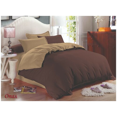 Постельное белье Amore Mio Сатин однотонный Caribou, 2 спальный комплект, хлопок, пододеяльник на молнии, простыня на резинке, коричневый