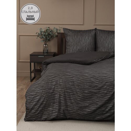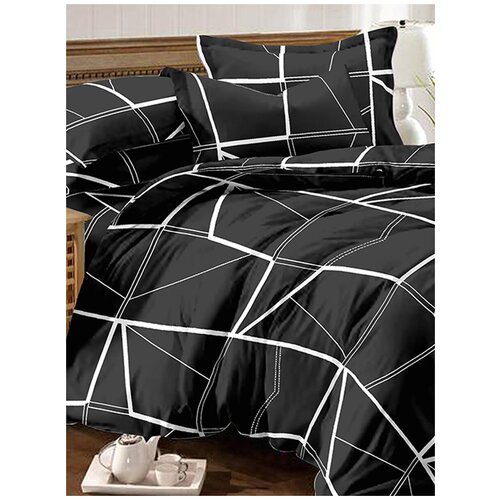 Комплект постельного белья Amore Mio Stellar, евростандарт, микрофибра, черный/белый