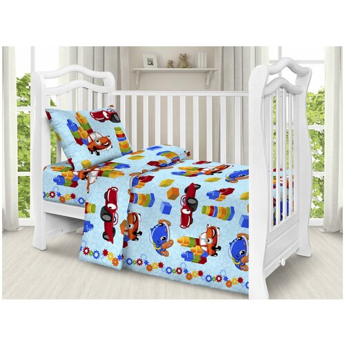 Постельное белье в кроватку поплин пл. 115 г/м2. Машинки (Детская кроватка / 112*147 / 100*150 / 40*60)