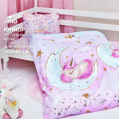 Постельное белье / комплект постельного белья юниор поплин простыня на рез. "Juno" рис. 16425-1/13250-2 Sleep unicorn