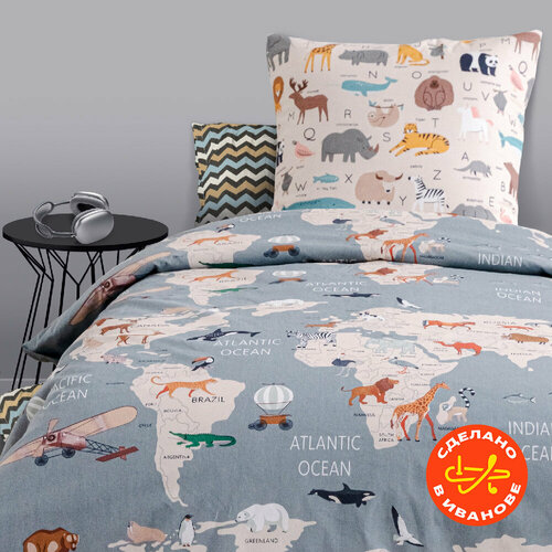 Постельное белье для детей и подростков Твой Стиль 1,5-спальное, Поплин, География