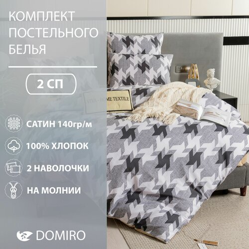 Постельное белье DOMIRO сатин 100% хлопок, комплект 2 спальный на молнии, наволочки 50x70 (2шт) или 70x70 (2шт) серый, черный, белый