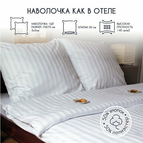 Наволочка HORECA на подушку 70х70 см (Страйп 3:3 полоска поперёк) 1 шт без ушек, сатин, 50% хлопок 50% пэ, белые, полосатые, отеля, гостиницы, дома