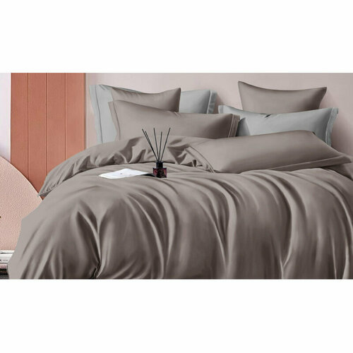Постельное белье Asabella 100% тенсель люкс 2137-6 евро, cерый/фисташковый