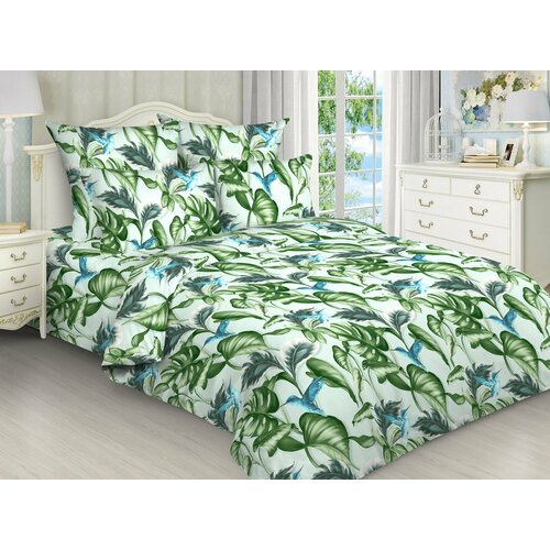 Постельное белье семейное с 2 пододеяльниками 160x220 Simple Living Hawaii комплект сатин, 2 наволочки 50х70, Зеленый