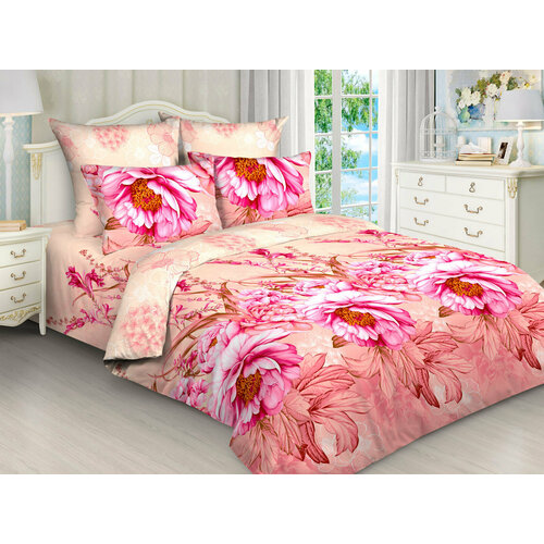 Комплект постельного белья Шуйские Ситцы Экодом "Персик" бязь/персик, 2-х сп. с европростынёй, рис.9844-1
