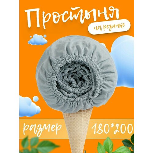 Простынь натяжная однотонная на резинке по периметру, 180х200х20 см