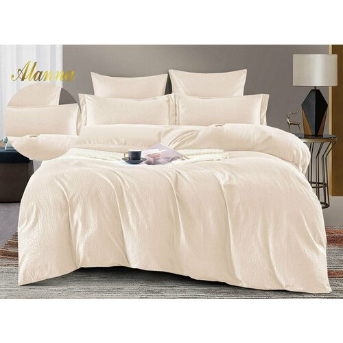 Постельное белье евростандарт двуспальное / 2-х спальное/Alanna /Сатин, Жатка/ простыня 220x240/ пододеяльник 200x220/ 4 Наволочки 50x70-2, 70x70-2