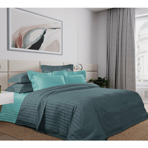 Постельное белье Legends двухспальное, страйп-сатин, Зеленый